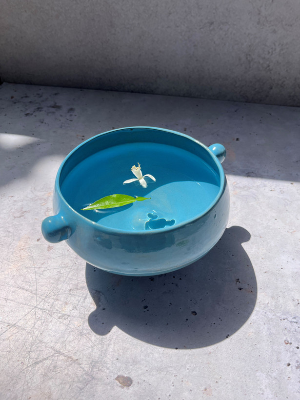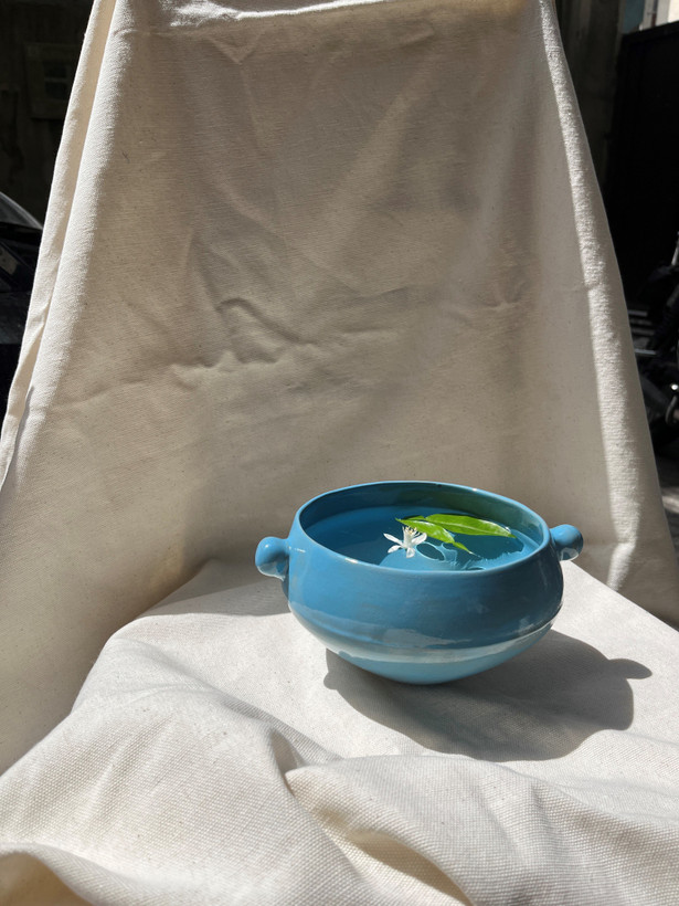 کاسه پذیرایی سرامیکی آبی دسته دار