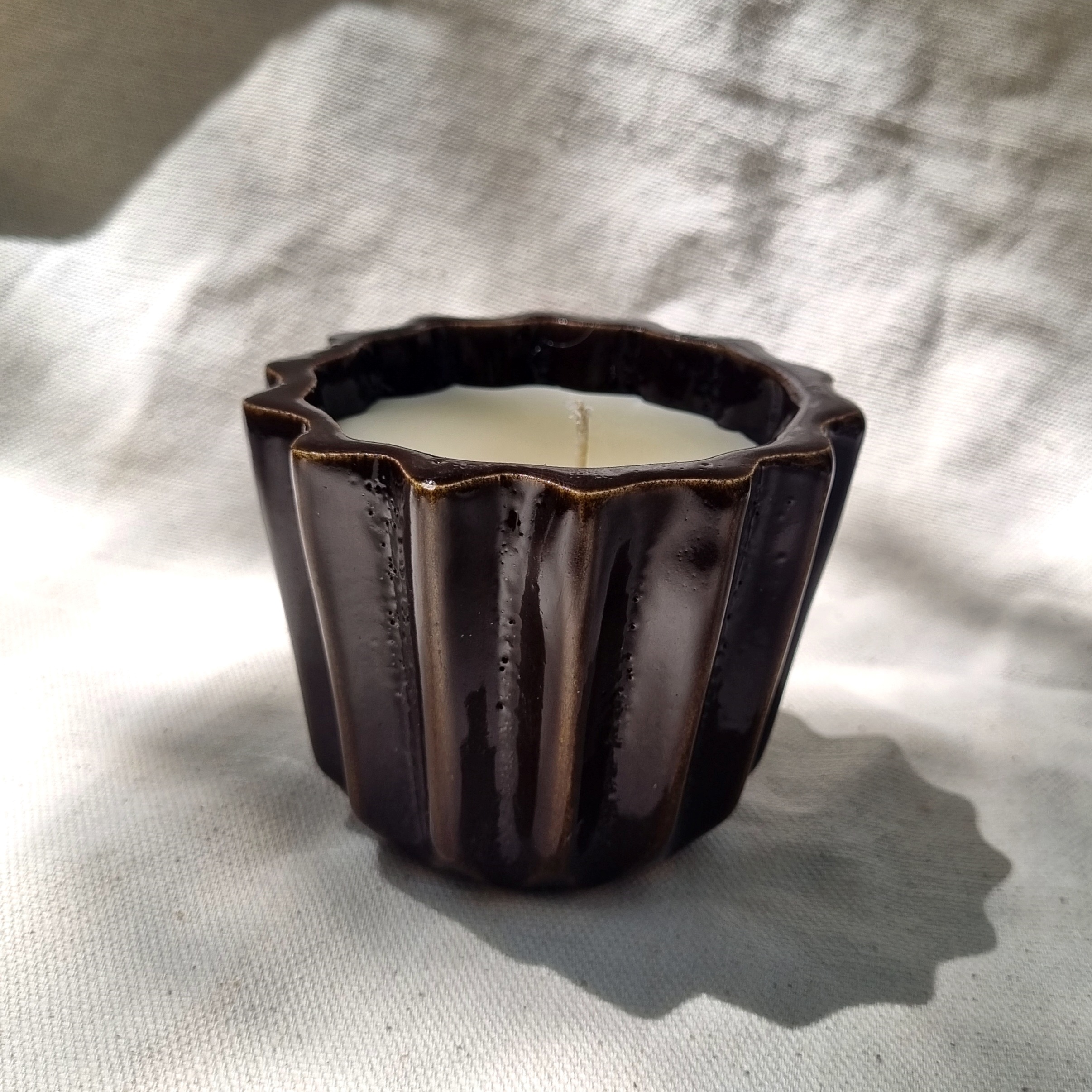 کاسه ای سرامیکی دارای پوشش لعاب و هنر دست حاوی شمع با پارافین باکیفیت