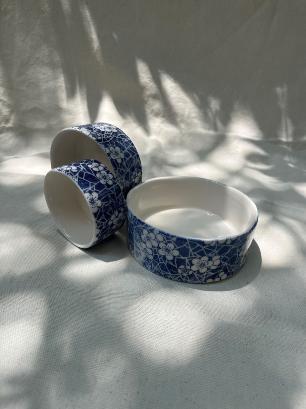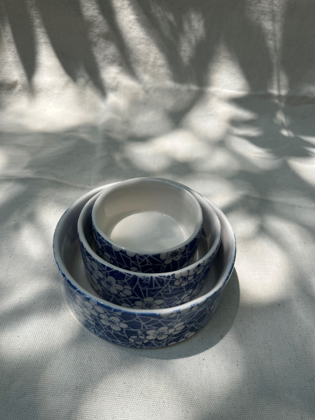 ست کاسه ماگ سرامیکی طرح آبی گلی