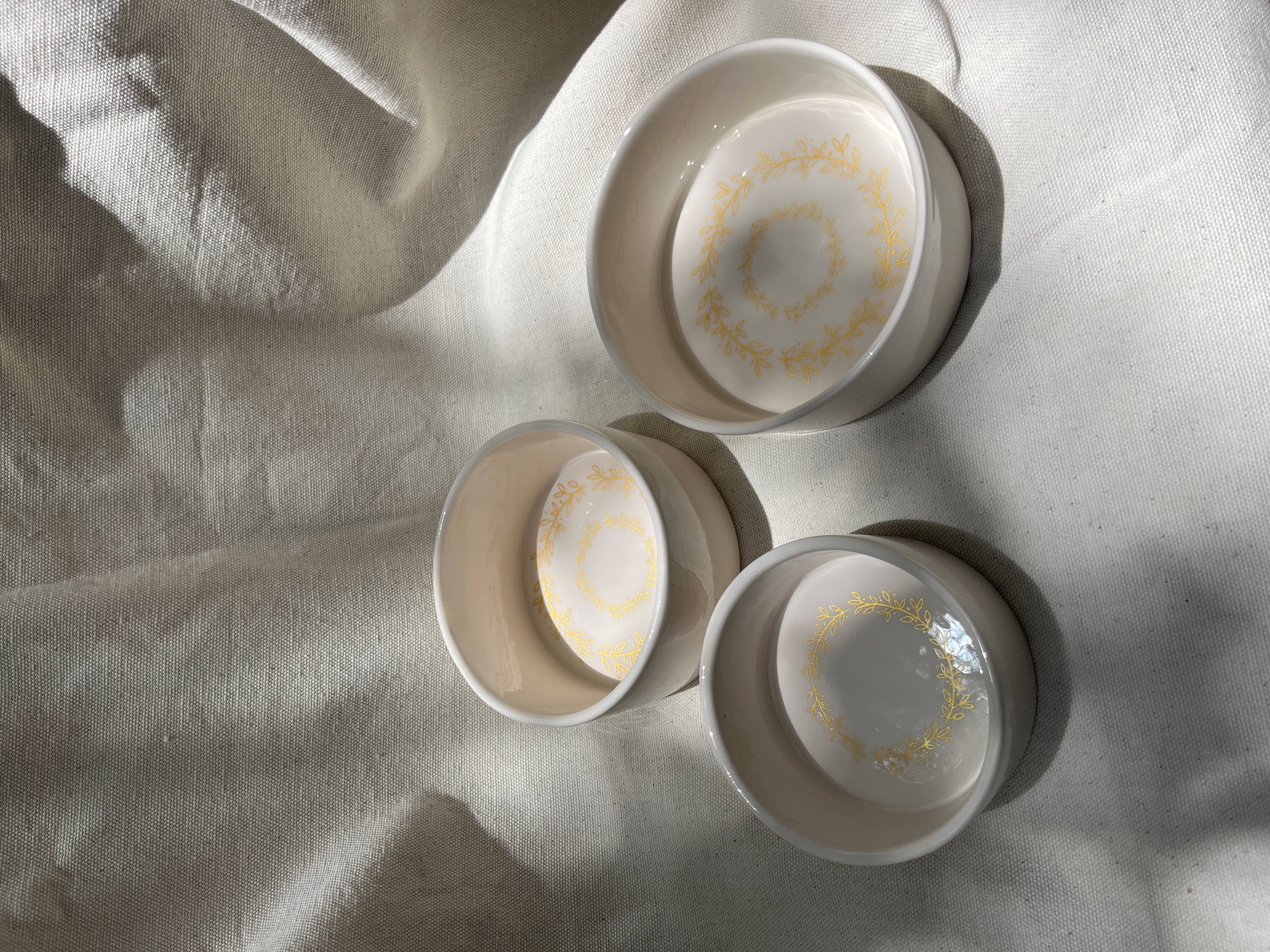 ست سه تکه کاسه ماگ سرامیکی با ترنسفر طلا