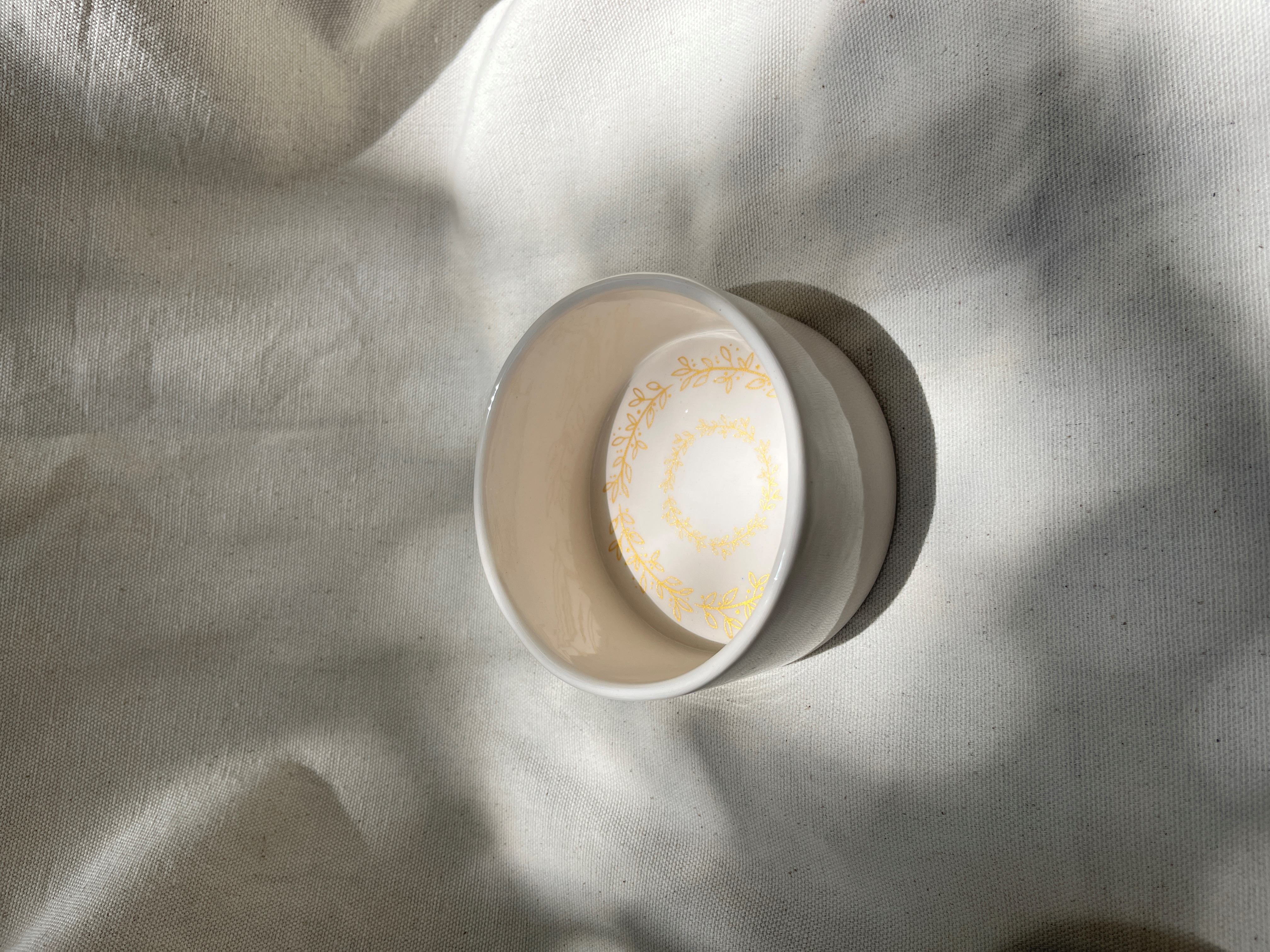 دارای ترسنفر گل های طلا و لعاب شفاف