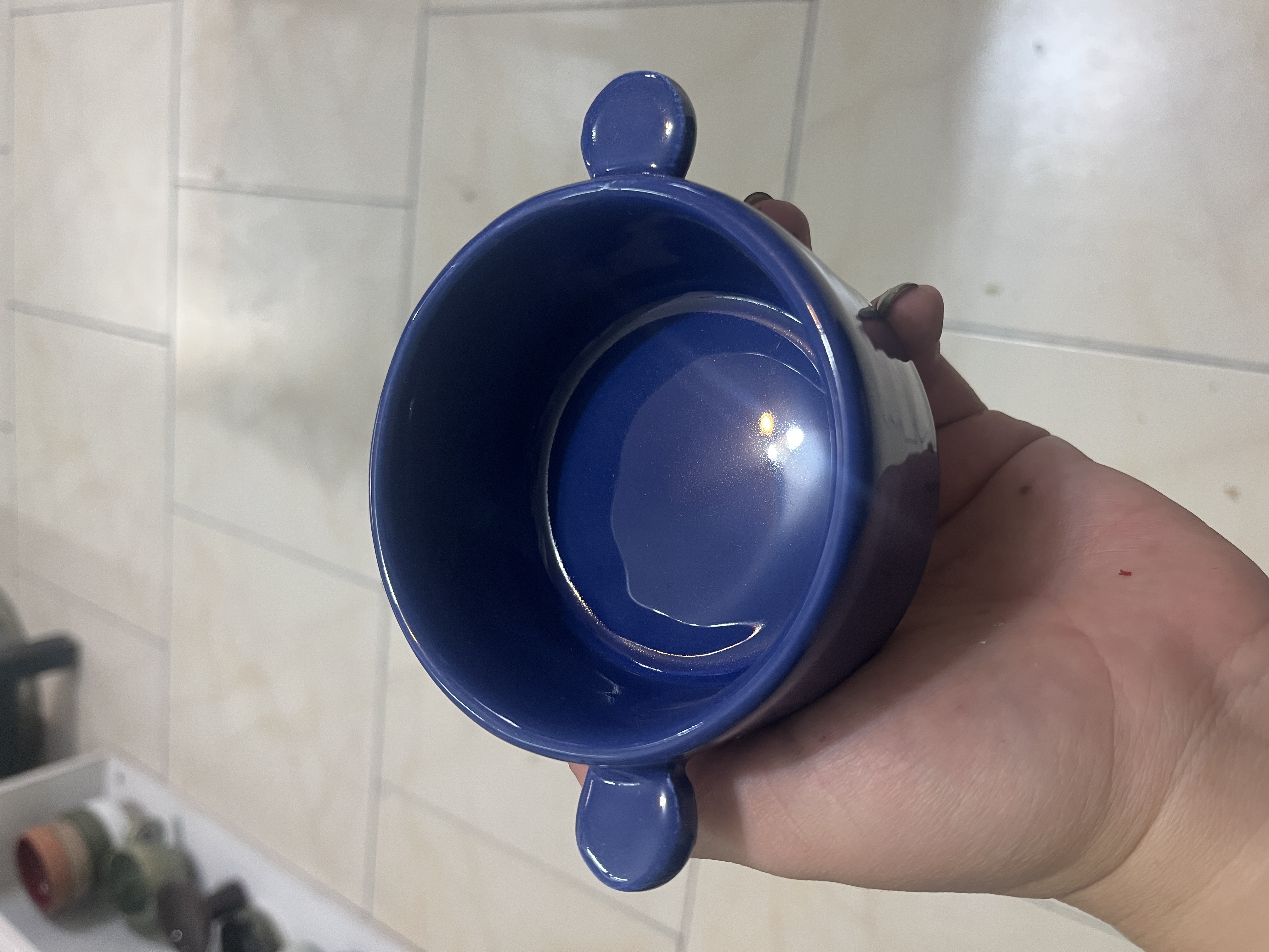 پیاله سرامیکی لاجوردی دسته دار