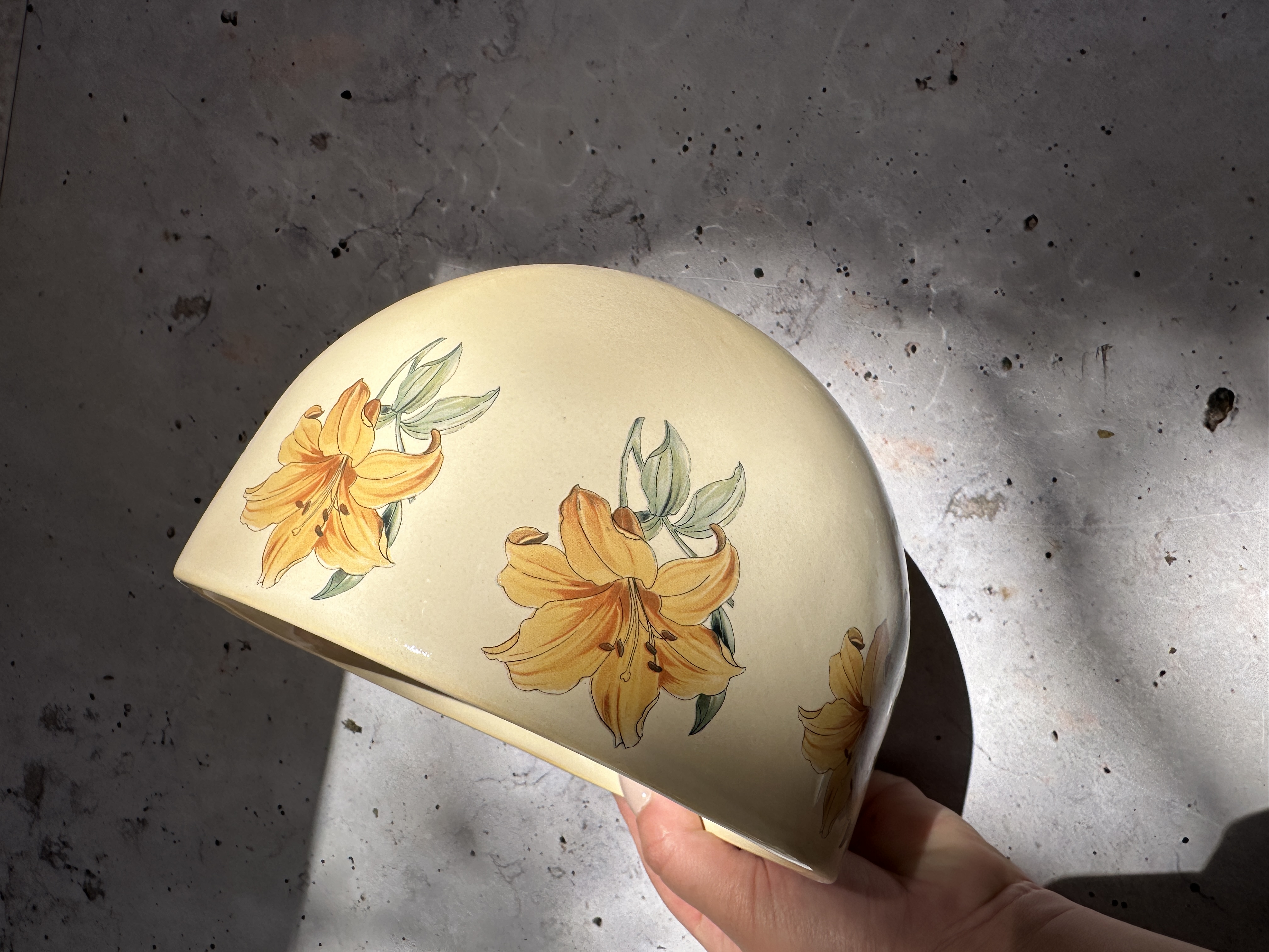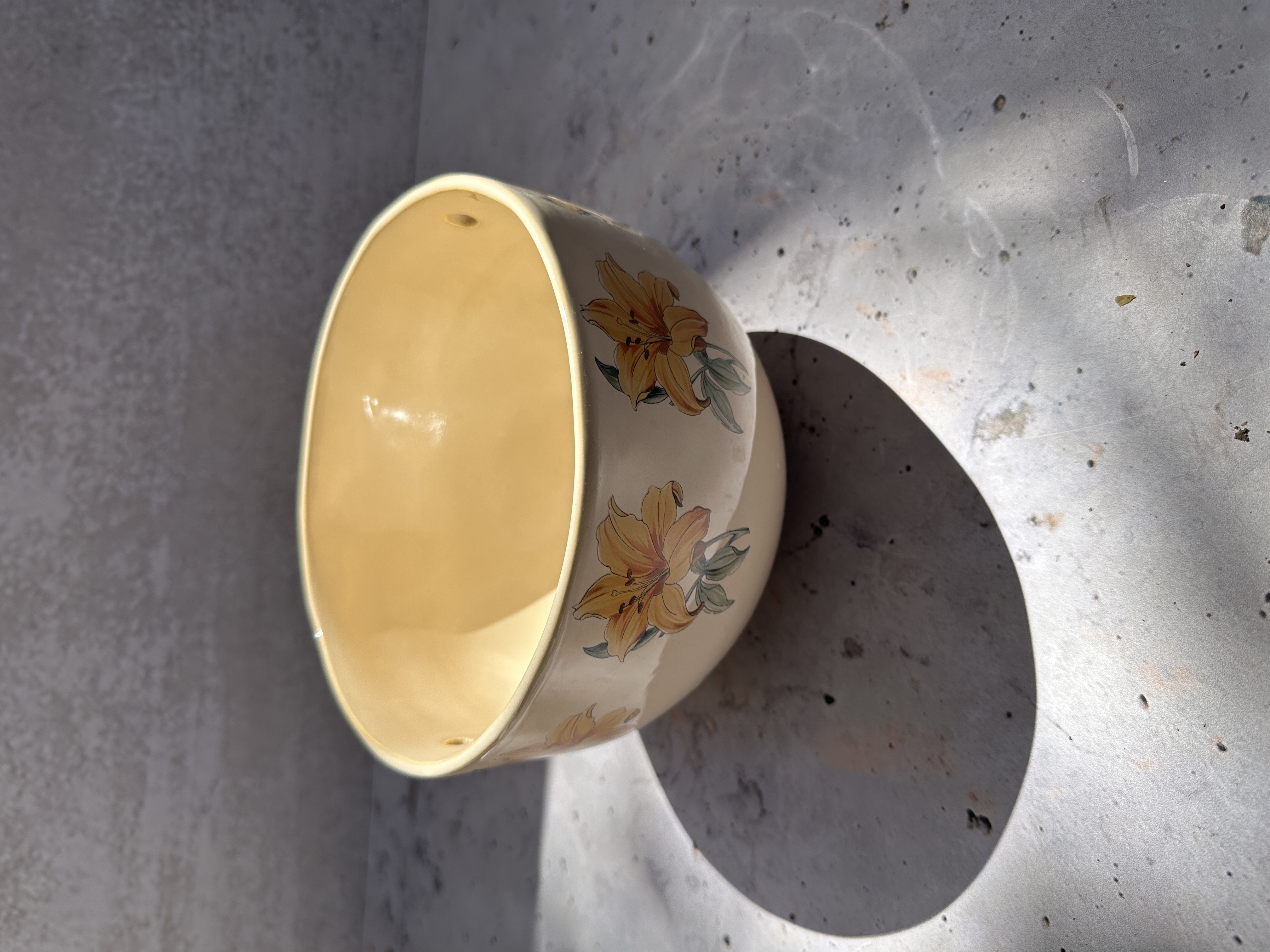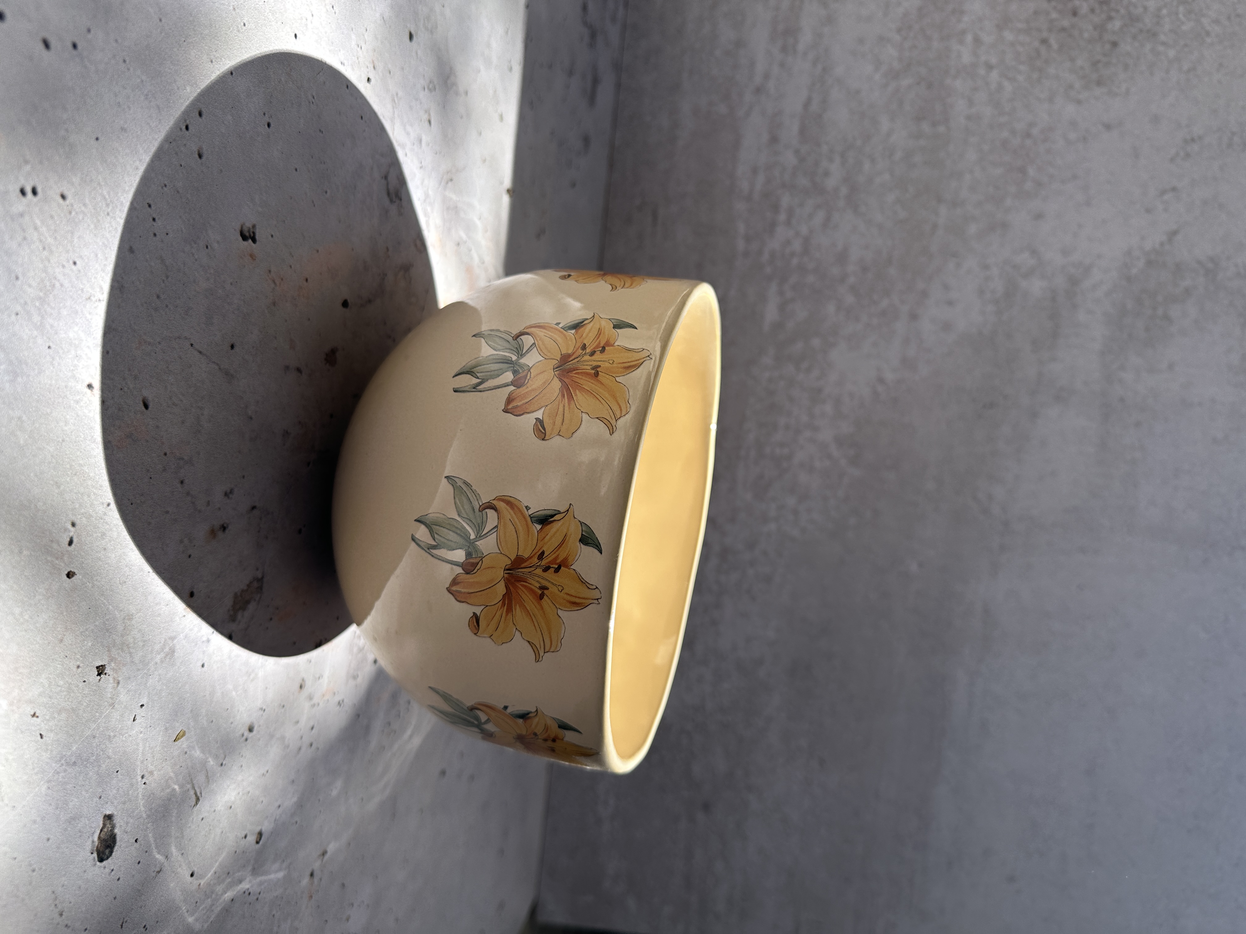 کاسه پذیرایی سرامیکی با طرح گل شیپوری ترکیب کرم و زرد و خردلی عمق دار و مناسب سرو انواع مواد غذایی و میوه و آجیل و... دارای ست در طرح های دیگر( موجود در سایت؛کاسه اطلسی شیپوری) مناسب برای هدیه
