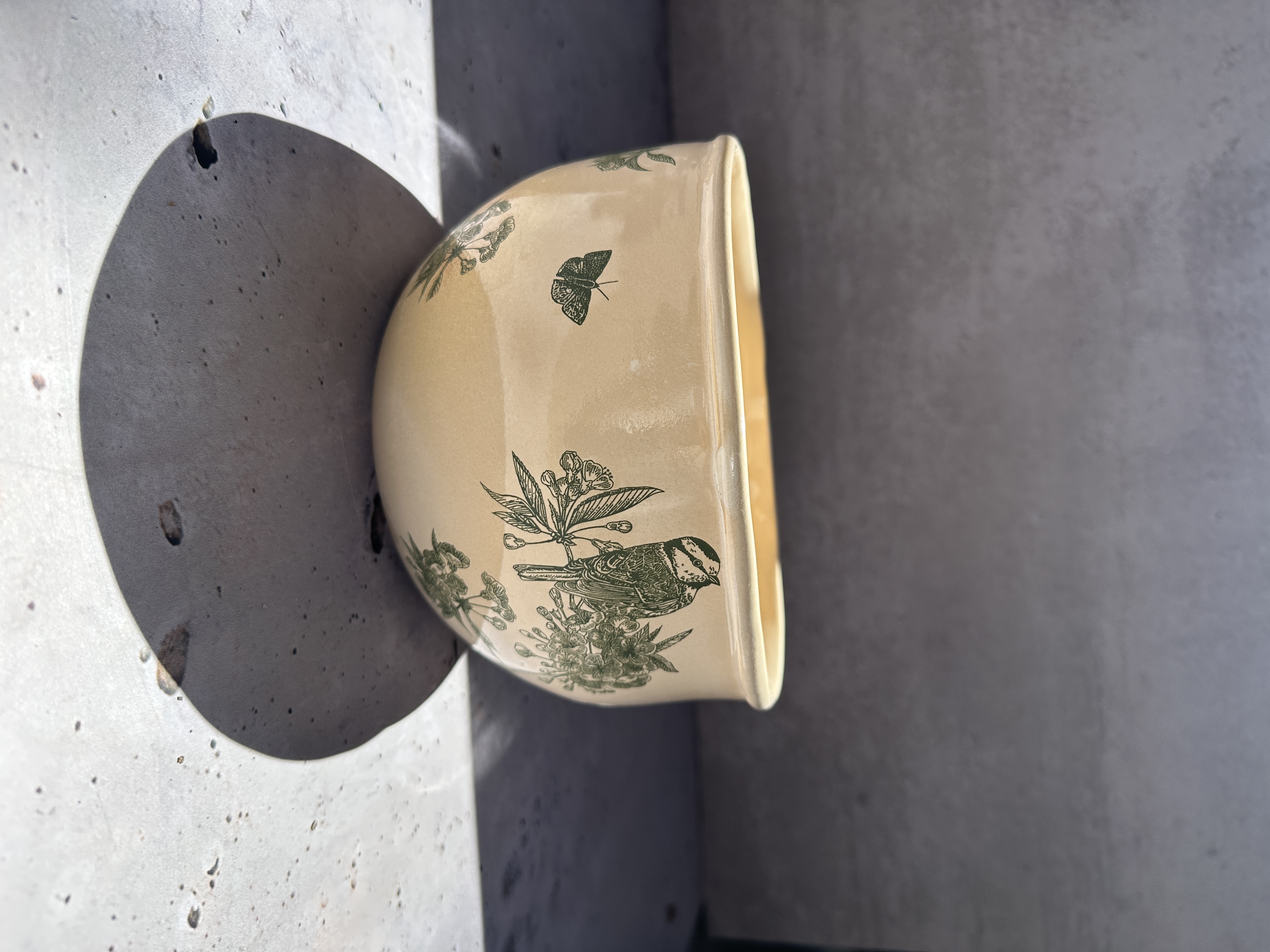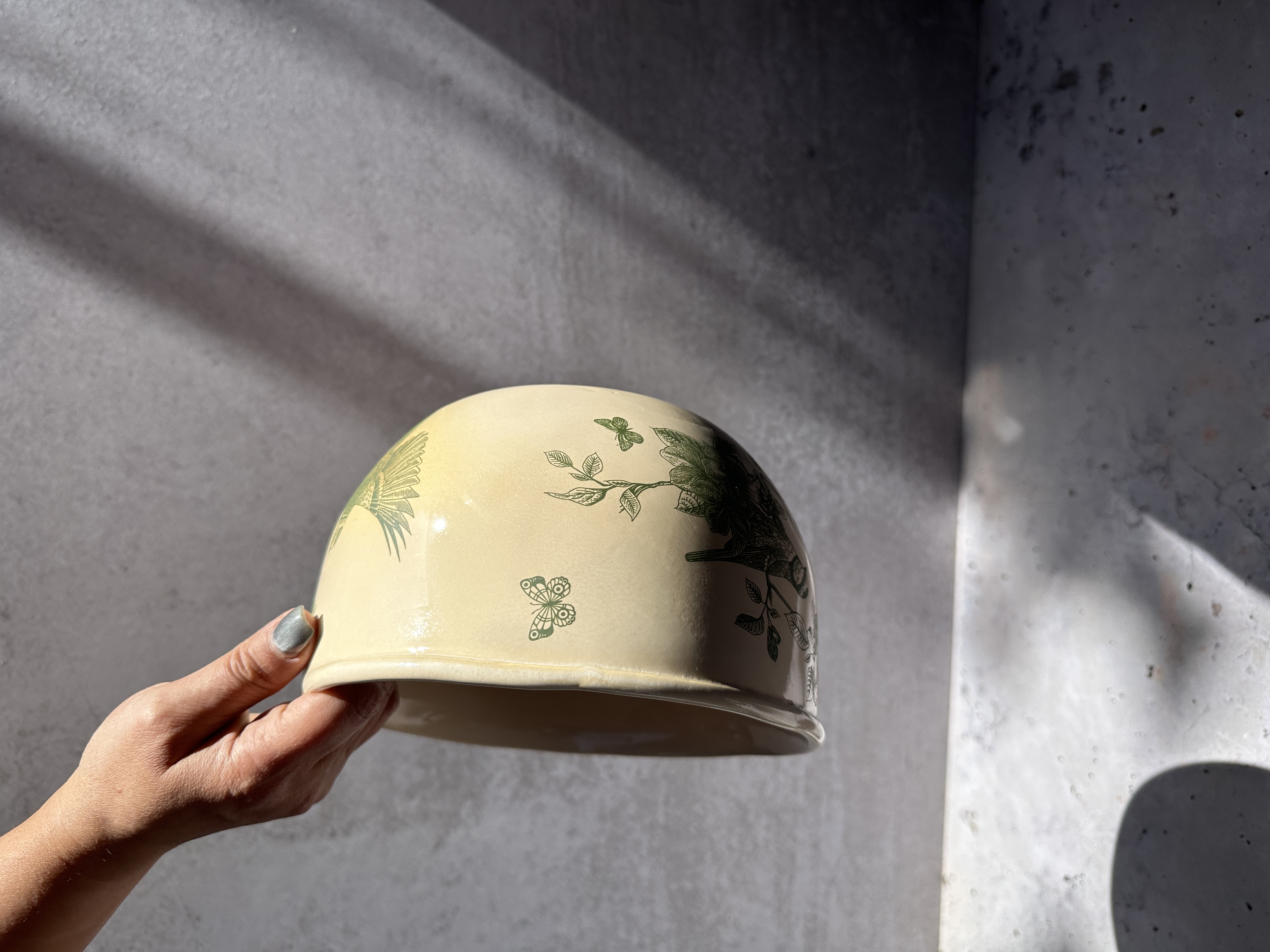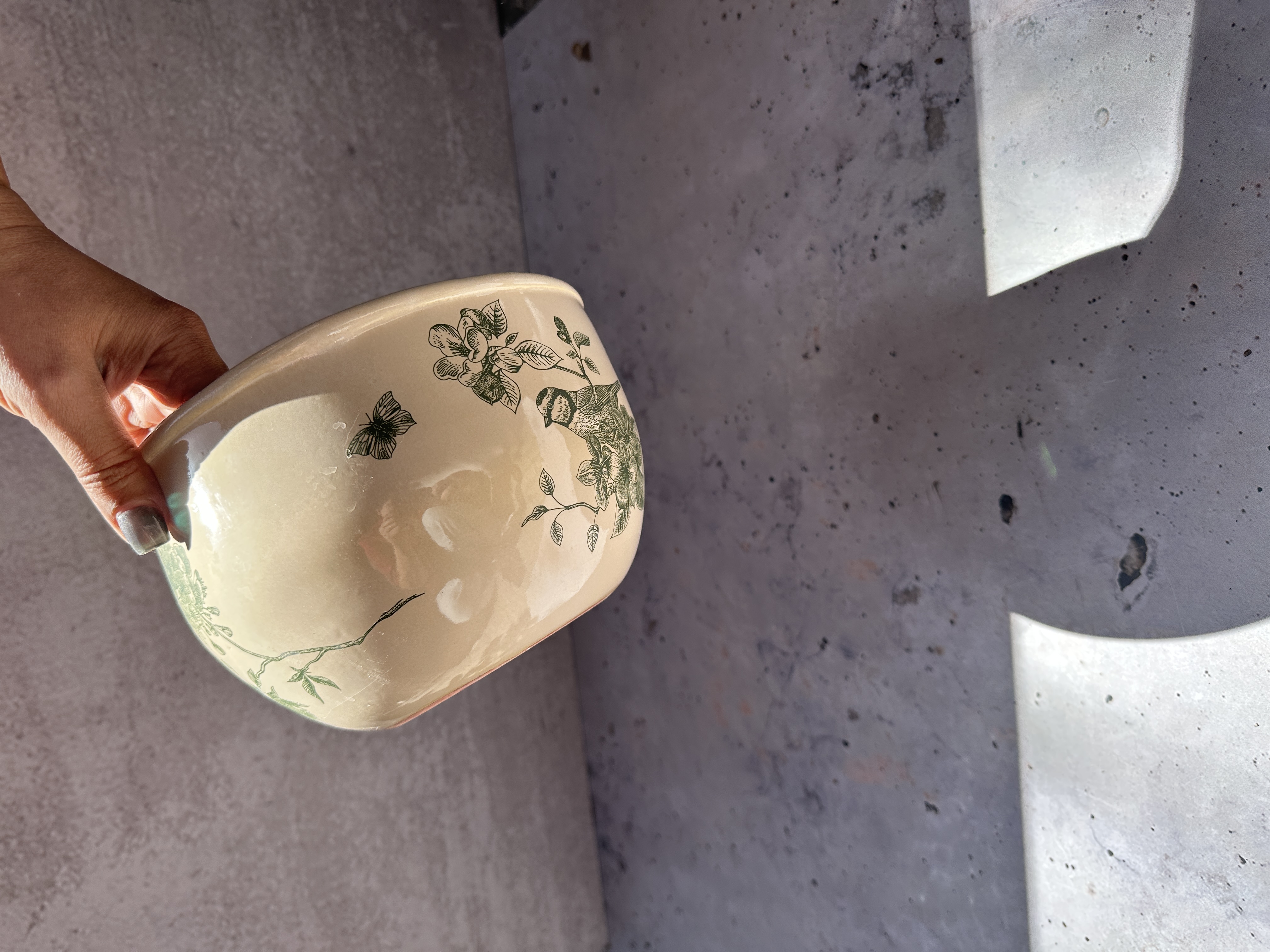 کاسه سرامیکی پذیرایی دفرمه شده با طرح سبز پرنده و گل