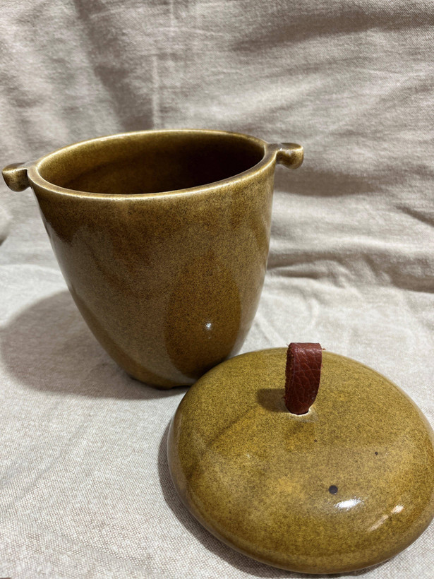 بانکه سرامیکی با درب شامل دسته چرم طبیعی